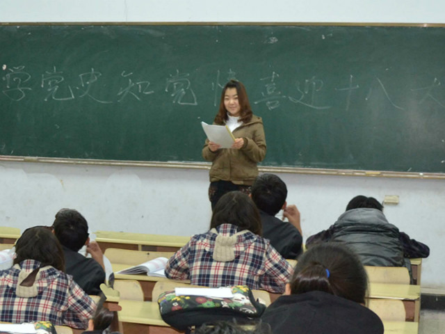 在党的十八大来临之际,为迎接党的十八大胜利召开,唱响时代主旋律,进一步增强同学们在中国共产党领导下走中国特色社会主义发展道路的坚定信心和决心, 10月28日晚,理学与信息科学学院在教学区开展了“学党史,知党情,喜迎十八大”主题团课活动,11、12级全体同学参加了此次团课活动。