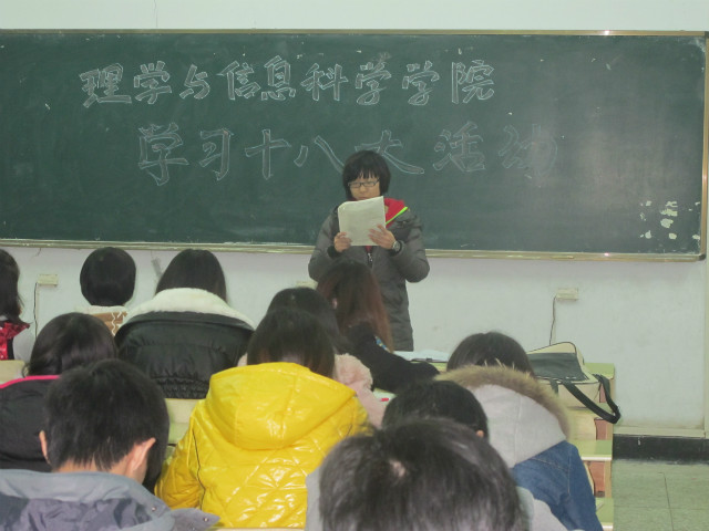 为深入了解十八大报告的精神内涵,更好的贯彻十八大精神,12月1日,理学与信息科学学院组织全体学生以班级为单位认真学习了党史、党的理论政策以及党的十八大会议精神。