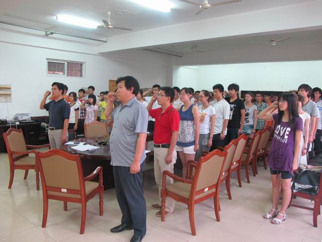 庄严、肃穆的国际歌奏毕,刘老师宣读了新一届学院预备党员名单。随后,在孙老师的带领下,全体预备党员在鲜红的党旗下郑重宣誓。学生预备党员代表宋朦娟同学在发言中表示:我们将坚定共产主义理想信念,坚持全心全意为人民服务的宗旨,在党旗的指引下前进,积极参与学院工作,带动其他同学共同支持学院的发展与建设。不断提高个人理论修养,树立新时期高校学生党员的良好形象,永葆共产党员的先进性,为理信学院辉煌的明天贡献自己的一份力量。