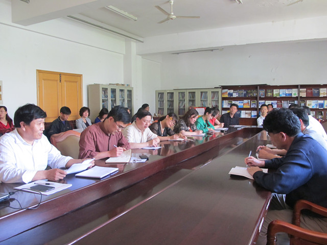 5月30日下午,理学与信息科学学院在信息楼资料室召开专题会议,学习贯彻落实校2013年党风廉政建设工作会议精神。学院党委书记李言照,党委副书记、副院长杨凯,副院长吴自库,团委书记曹银娣以及全体教职工党员出席了本次会议。