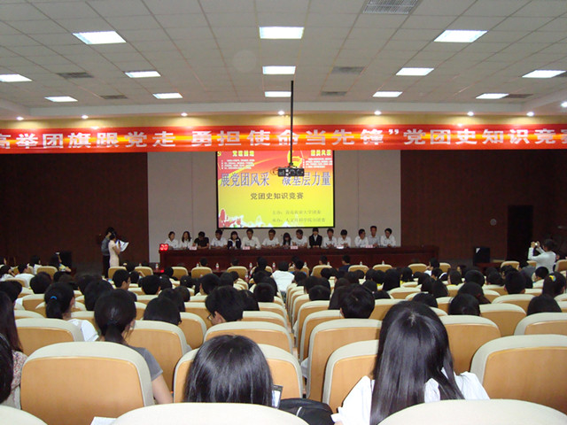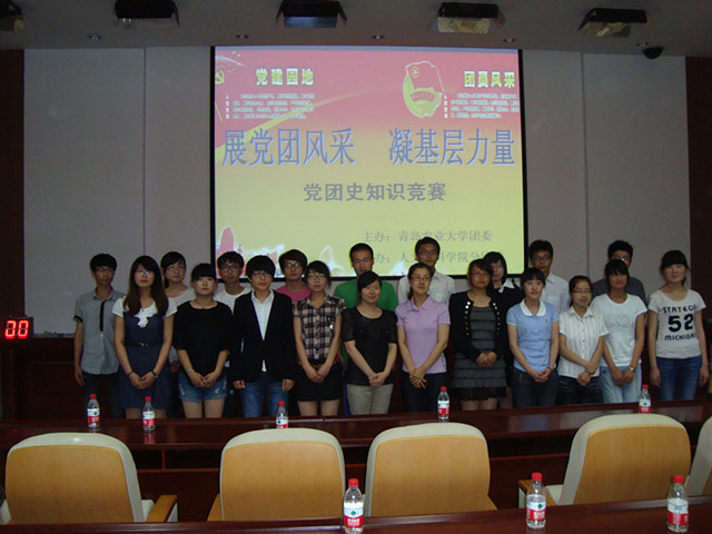 为深入贯彻党的十七届六中全会精神,激励广大基层团组织全面提高综合素质,以较强的组织凝聚力、战斗力迎接迎接党的十八大以及青岛农业大学第一届党代会、团代会、学代会的召开,6月5日晚,校团委主办、人文社科学院分团委承办的“高举团旗跟党走,勇担重任当先锋”党团史知识竞赛在学术会馆第一报告厅圆满落幕,理学与信息科学学院在比赛中表现出色,取得了优异的成绩。本次比赛共分必答题、抢答题、选分题三个环节,以中国共产党91年的辉煌历史和中国共产主义青年团90年以来发展历程为线索,展开了党团史知识的巅峰较量。党团史人物年谱、党团史知识判断、党团史事件竞猜……理学与信息科学学院代表队沉着冷静,对党团基本知识、基本理论的熟悉掌握,展示了他们敏锐的反应能力和运用马克思主义立场、观点和方法认识和分析历史的能力,赢得了在场观众的阵阵掌声。本次活动的成功举办,不仅丰富了大学生的课余生活,加深了大学生对中国共产党和共青团理论知识的认识,更展现了我院学子积极向上的精神风貌。相信在中国共产党的正确领导下,全院青年一定会抓住机遇,用好机遇,锐意进取,再铸辉煌,为祖国的发展贡献更大的青春、智慧和力量!