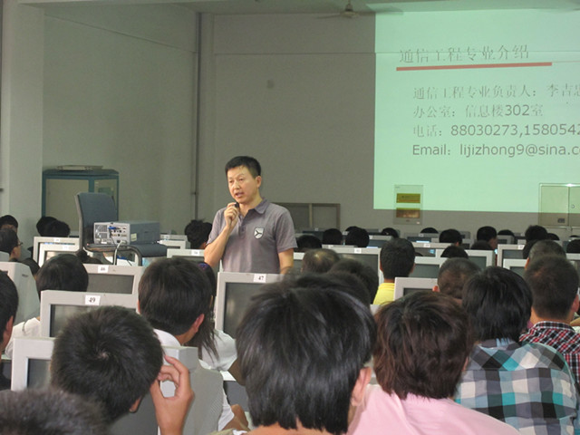 会上,专业负责老师分别从专业培养目标、专业课程介绍、教学实习、毕业应获得的知识和能力、考研与就业等几个方面对通信工程、计算机科学与技术、电子信息科学与技术、电子信息工程四个大类专业的专业设置和培养情况进行了详细地介绍。老师们风趣幽默的语言、细致入微的讲解不时迎来台下新生的阵阵掌声。吴院长对会议进行了总结发言,祝愿同学们在听取专业介绍后能选到一门适合自己的专业,在未来的学习、工作中大展宏图。吴院长还告诫同学们端正学习态度,做到对家长负责,对自己负责。