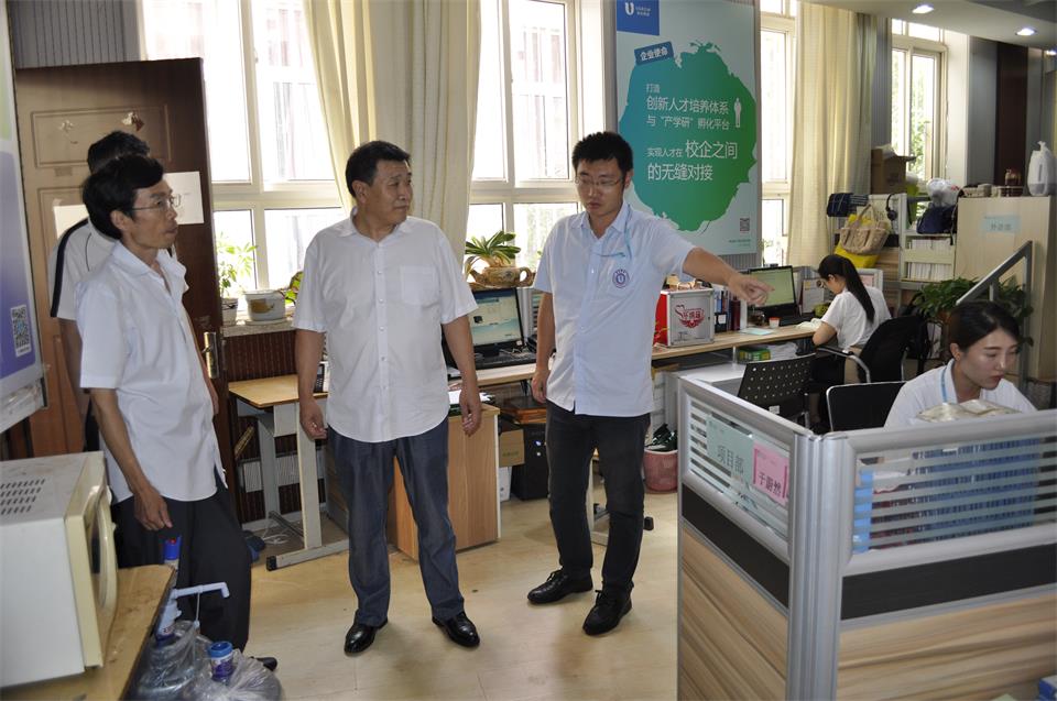 8月18日,理学与信息科学学院院长李言照,党委副书记、副院长杨凯,副院长陈龙猛,办公室主任周启河,团委书记孙杰前往英谷科技实训基地走访看望学院2013级软件外包、物联网两大专业第一批实训同学,并与青岛英谷教育科技股份有限公司负责人进行座谈。