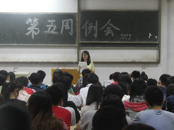为了让同学们能度过一个安全快乐的假期,保证学院工作有序进行,9月25日,理学与信息科学学院在教学区B102召开学院第五周学生干部例会,学院辅导员王甜甜和理信学院全体学生干部参加会议。