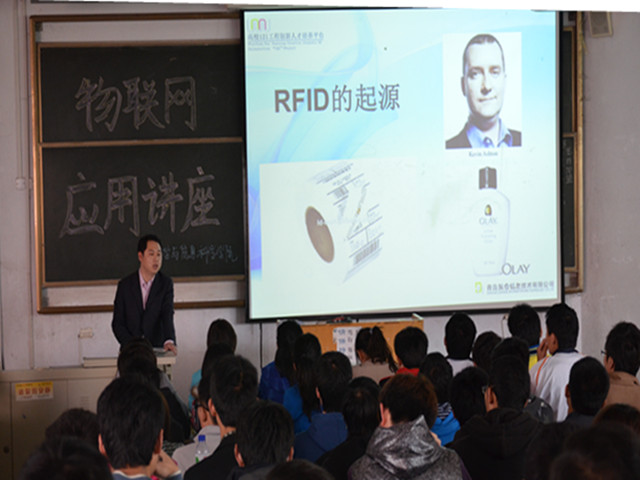 为了加强物联网专业学生对本专业的了解,明确学习目标,理学与信息科学学院于4月22日上午在教学楼B区104教室举办了“物联网专业知识”讲座。青岛东合信息技术有限公司孙锡亮老师应邀为百余名物联网学子做报告。