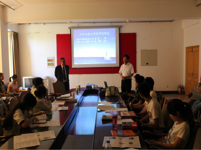 北陆大学(Hokuriku University)成立于1975年,日本著名的私立大学,是沿日本海一侧的唯一的私立综合性大学。北陆大学位于日本石川县金泽市。日本石川县‘学习环境“全日本第一”,“人均富裕”全日本第二位。截止2013年,学校有3个学院、6个系、1所研究生院和1个别科。会上,北陆大学计算机学科负责人阿部光正首先介绍了北陆大学计算机软件专业情况;接着周睛博士介绍了北陆大学的学习、生活情况,介绍了留学北陆大学所必备的日语条件、专业条件以及留学北陆大学毕业后去向等。