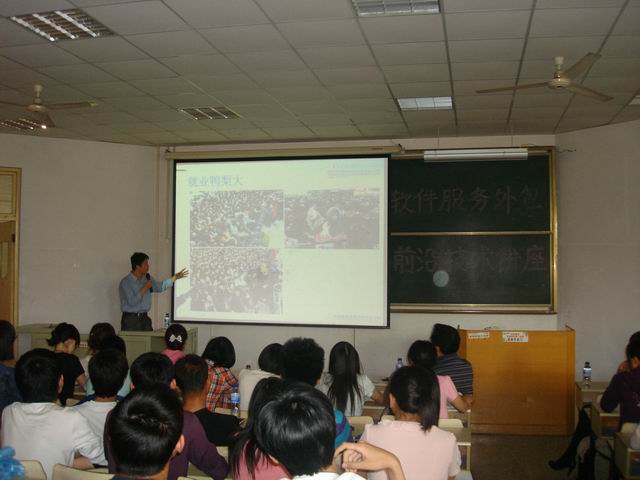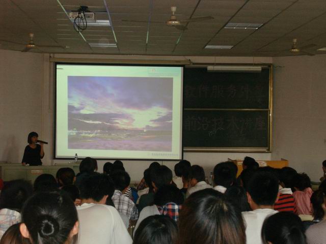 为进一步增强我院软件外包专业众学子的专业素养,丰富同学们的课外知识,加强学校与企业间的沟通交流,理学与信息科学学院邀请青岛东合信息技术有限公司的专家,于5月15日下午,分别在教学区B202教室及B204教室,为软件外包09级、10级全体同学进行了软件服务外包前沿技术讲座,学院院长崔文善教授、副院长陈龙猛教授参加了本次讲座。