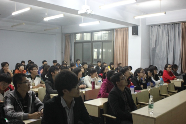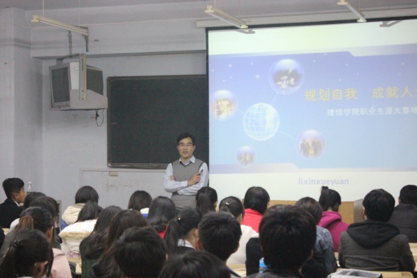 晚上7点,培训正式开始。杨凯老师以几个职业生涯规划问题开场,引起了同学们的兴趣。随后杨凯老师用生动形象语言介绍了职业生涯规划的含义、基本的职业生涯规划书的组成等,中间还穿插了几个简单的性格分类和职业测试,并且列举了多个优秀的职业生涯规划书。风趣幽默的语言不时引起全场阵阵掌声。最后培训在同学们高涨的情绪气氛中结束。
