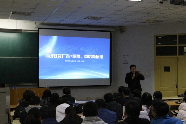 11月25日,理学与信息科学学院邀请到微盟事业部总监王彪为2017届毕业生作题为《腾讯社交广告+微盟,微信新玩法》的报告,此次报告由理信学院团委书记孙杰主持,理信学院2017届毕业生参加。