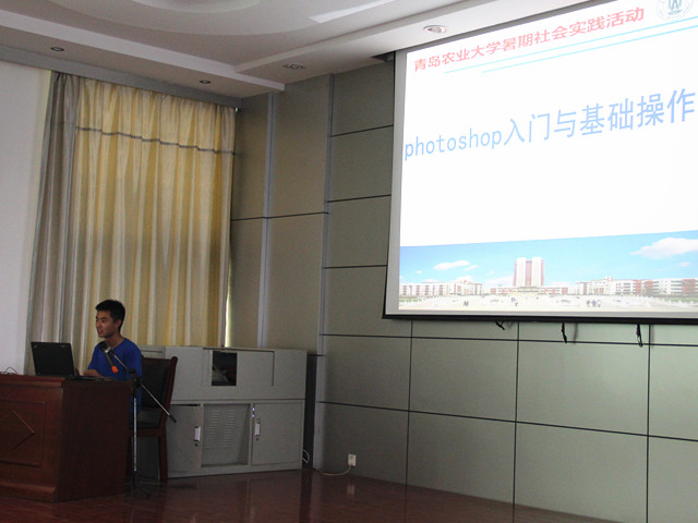 此次讲座,由青岛农业大学理学与信息科学学院暑期社会实践活动团队成员王帅同学主持。王帅同学向大家详细讲解了PhotoShop的基础操作。在开始时展现了PhotoShop处理后的几张效果图,吸引了学生们的注意力,然后从PhotoShop文件建立、打开、储存开始,逐渐展开矩形选择工具、套索工具、魔法棒工具等常用工具的讲解,以及消除照片污点以及照片美化,并通过具体的实例向大家介绍了这些工具在实际工作中所发挥的作用。并在提问时间详细通俗地解答了学生提出的问题,灵活改变教学内容。使在场的同学一边学习一边互动,在实践中巩固学习,在学习中收获了快乐。