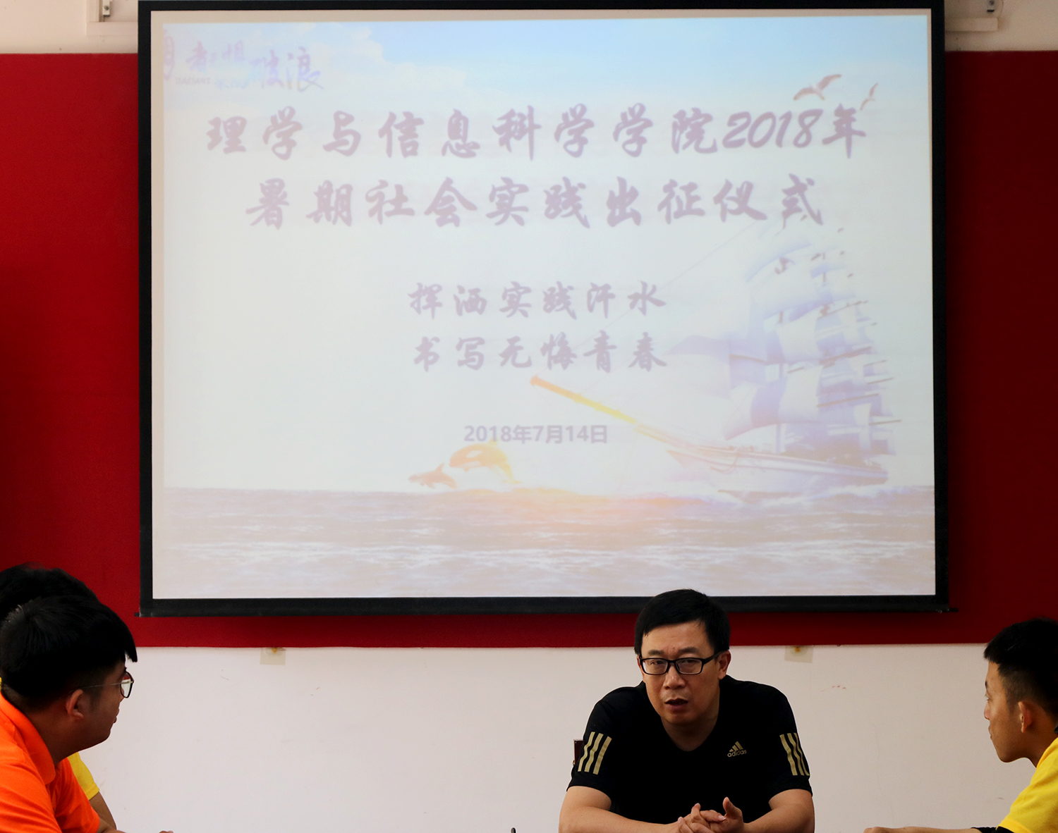 7月14日,青岛农业大学理学与信息科学学院在信息楼215隆重举行2018年暑假社会实践出征仪式,仪式的召开标志着社会实践团体成功携手书写“三年之约”的最后一章。团委书记孙杰和赴枣庄社会实践团体全体成员参加此次仪式。