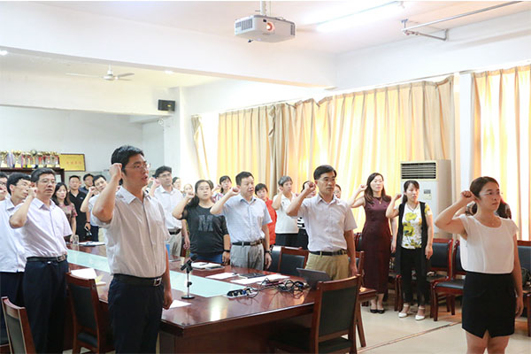 “我是青岛农业大学的一名教师,热爱祖国,忠诚于党的教育事业,遵纪守法,为人师表,敬业爱生,教书育人,自觉践行社会主义核心价值观……”9月7日,在教师节即将来临之际,理学与信息科学学院于信息楼215隆重举行全体教职工宣誓仪式,共迎第三十三个教师节。