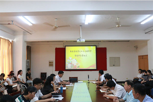 仪式后,党委书记杨凯发表讲话,对学院全体教职工辛勤付出充分肯定并表示感谢,并结合学院教师实际,阐释了作为一名人民教师所拥有的责任感、荣誉感和幸福感,对教师这个神圣的职业给予了高度的赞誉。他指出,世上很少有像教师这样的职业,与民族的兴衰息息相关;世上很少有像教师这样的职业,承载着万千家庭的希望和梦想;世上很少有像教师这样的职业,需要用良心和智慧去塑造人的心灵。