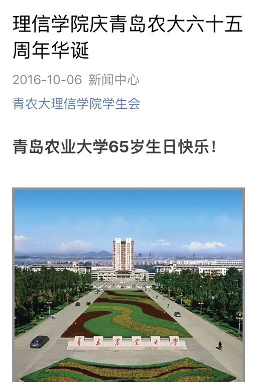 “时维十月,序属三秋”,于金风送爽、丹桂飘香的美好时节,欣逢青岛农业大学建校六十五周年华诞欢庆之际,理学与信息科学学院特此开展校庆系列活动,恭贺青农大母校六十五周岁生日快乐!