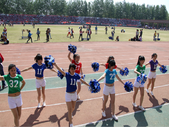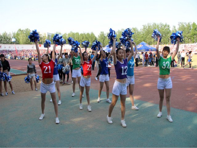 为了在运动员休息期间为他们带去放松、为观众带去欢乐,校运动会期间,有这样一些人,她们激情昂扬的进行着啦啦操表演。在24、25日两天的赛程中,理学与信息科学学院的啦啦队在运动会表现卓越,得到大家的热烈欢迎。