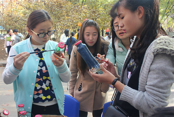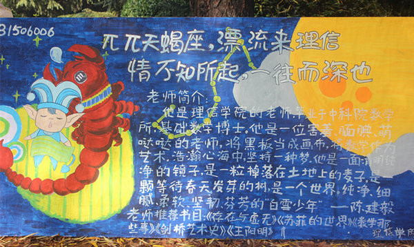 而本期的图书漂流活动在以前传统活动基础上也有了一些新的举措,各学院以各星座作为象征来装饰画板,理信学院的“兀兀天蝎座,漂流来理信”书摊更是吸引了一大批爱书的小伙伴前来寻找好书。活动现场,五彩缤纷的玻璃瓶彩绘使本次的活动趣味无限。