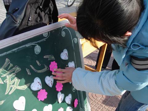 校外,一幕幕感人事例也在上演着。大润发前,一个在凛冽寒风中卖菜的老太太,虽然衣衫单薄破旧、生活艰难,但她仍然从不多的收入中捐出五元,用颤巍着的手将钱放入捐款箱。一个一直冷眼旁观的姑娘,在与同学们进行现场交流后,当场把自己身上仅有的50元钱捐出,同学们后来了解到,她曾被一残疾女人利用同情心,骗走了700元的血汗钱,至今查无音讯,从此她开始怀疑社会,但是今天,她通过长时间的观察,心中沉寂的火种被重新点燃,她要继续服务社会,帮助他人,最后她还祝愿王刚同学早日康复,能够尽快重返校园。一个小女孩认真地把自己积攒了半年的零用钱投进了捐款箱;多名抱着孩子的家长握起孩子的小手投递爱心;还有不少路过的家长,将钱给孩子,让孩子前来投递,稚嫩的小手,天真的童颜,传递着爱心的祝福。潍坊晚报、新浪潍坊、潍坊新闻网、青岛晚报等多家媒体在了解情况后,对我校师生们的义举予以高度肯定,并呼吁社会各界伸出援手、奉献爱心、帮助王刚同学早日康复,重返校园。