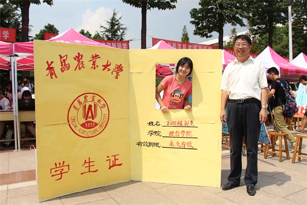 学生证是大学生活必备证件之一,而巨幅学生证将原本二维平面的证件创造出立体感供新生合影留念。同时,学院也制作了其他19个院校的名称供新生交换,让更多的学生参与到爱校、爱院的行动中来。