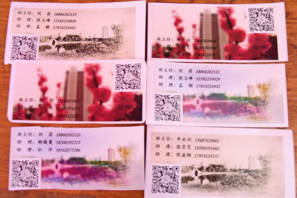 为了更好地迎接、帮助新生,高年级同学通过竞争上岗,成为班主任助理,担当“临时老师”的角色。理信学院学生会也别出心裁设计了“班主任班助名片”,并制作“班主任班助风采展”。