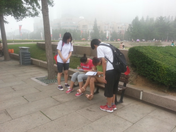 7月18日至19日,理信学院“调研山东”活动B组(赴城阳小组)刘佳和崔建江两人在城阳区开始了“调研山东”城阳区小组的调研活动。实际的调研过程并没有想象中那么容易,三个小时里他们只发出了十几份调查问卷,一些过往的路人并不配合调研工作,各种各样的理由推脱,但是B组成员依旧坚持微笑着宣传和解释这次活动,来请求配合,他们分别去了电影院、车站、大润发、家佳源、宝龙、国货等人流量大的地区。在本次调研过程中他们还遇到了机电工程学院的调研团队和手拉手义务支教队的队员,他们互相交流经验,相互鼓励。经过小组成员为期两天发放问卷的努力,成功把每组350份调查问卷全部完成。