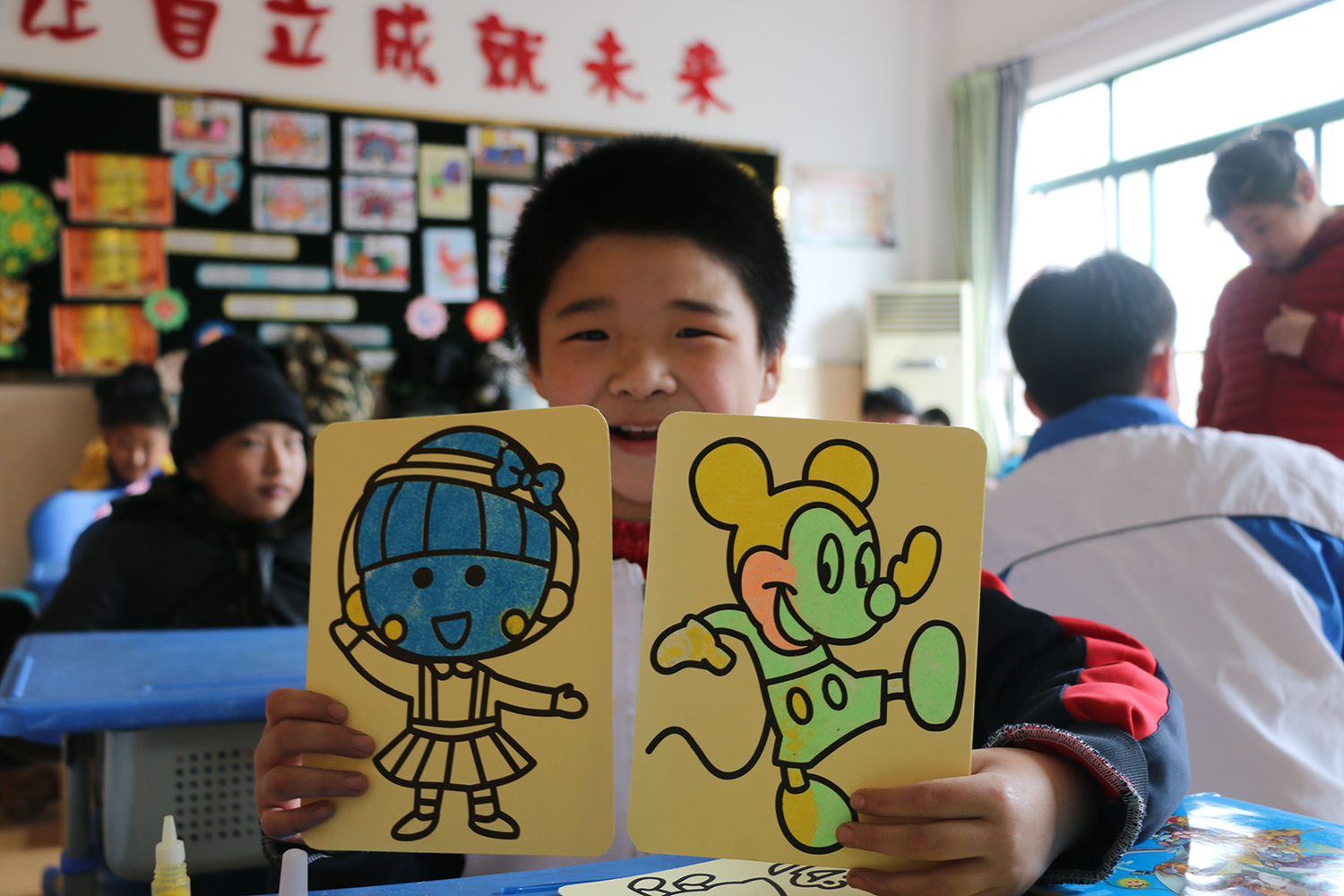 经特殊教育中心负责人介绍,在这里受教育的孩子,大部分存在自卑心理,不会与人相处,需要志愿者们细心、耐心的引导交流。面对巨大的挑战,志愿者们毫不畏惧,积极主动地与孩子们交流互动,陪孩子们一起画沙画,做游戏,讲故事,用温暖亲切的话语让孩子们渐渐对他们敞开心扉,脸上也露出了快乐的笑容,一时之间教室里笑声朗朗。希望这次活动能在给他们提供物质帮助的同时也带去精神及心灵上的帮助。