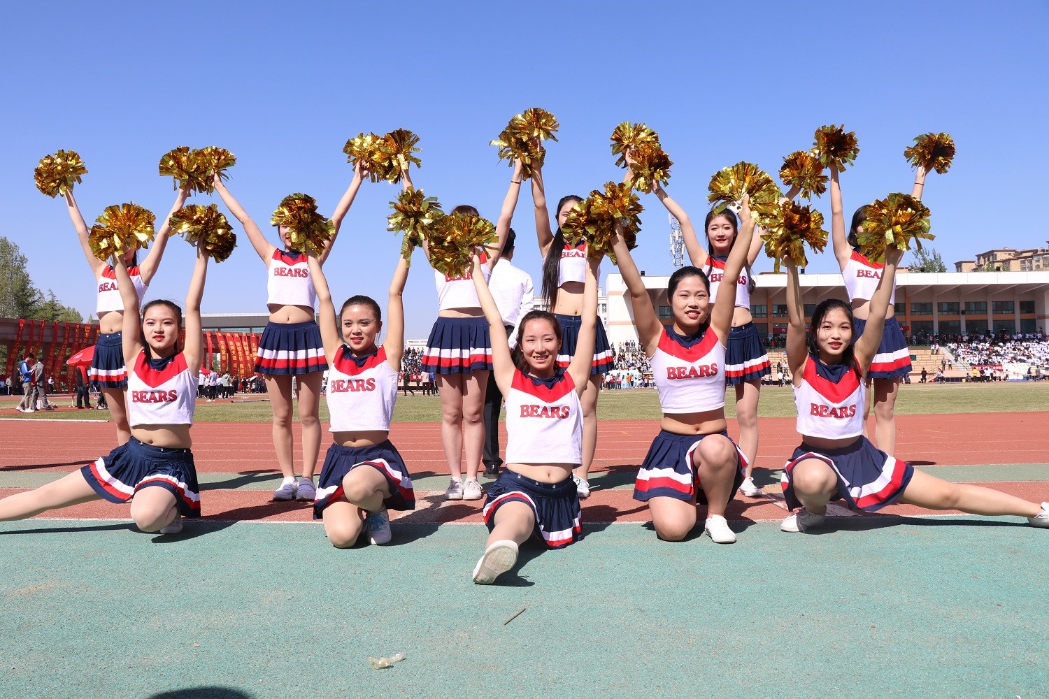 旋转跳跃,激情飞扬。啦啦队的精彩表演充分展现出理信学子青春的活力与朝气,鼓舞运动员在赛场上驰骋奔腾,创造佳绩。