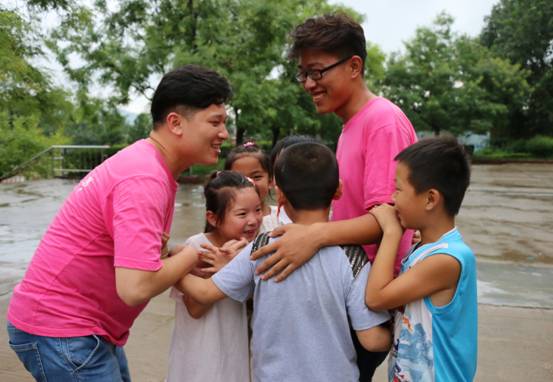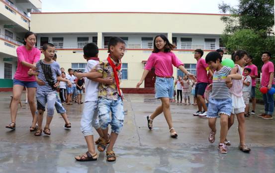 或许,在参加趣味运动会之前同学们之间还是陌生的、害羞的。欢笑过后的他们互相拥抱、拉手奔跑,有的竟然已经开始称兄道弟了。暑期实践团队成员和他们之间距离似乎更加得近了。