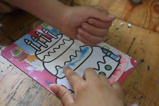 当你眼睛紧紧盯着讲台上那一摞绑着的沙画时,你的眼神告诉他们,此刻的你是急切的;当你的小手小心翼翼地拨弄彩砂时,你的表情告诉他们,此刻的你是激动的;当你面对摄像机高高地举起你的作品时,你的动作告诉他们,此刻的你是骄傲的。