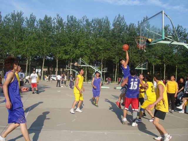 5月26日下午,在西篮球场举行的男篮比赛中,理信学院以50:21轻松取胜化药学院,取得了小组赛“三连胜”的优异成绩,团总支书记杨凯亲临现场观看了比赛。