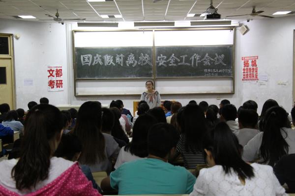 此次迎国庆假期安全工作会议的召开,使同学们进一步懂得了“安全无小事,事事皆安全”的道理,增强了全体学生干部的责任意识,同时也为学生工作及国庆期间的安全稳定工作奠定了基础。