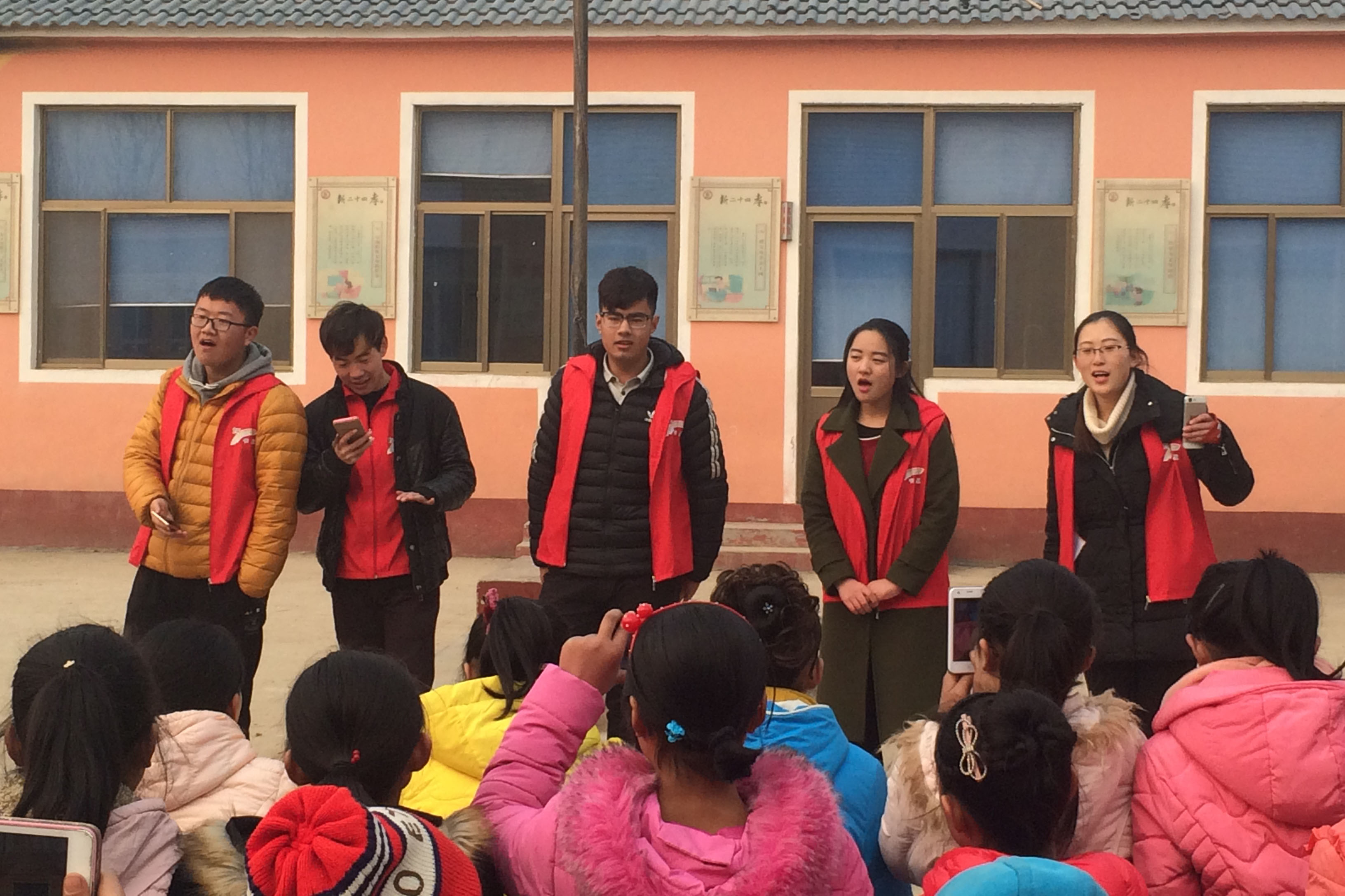 虹书屋队员和孩子们集合在教室前小广场进行文艺汇演,开场舞《大王叫我来巡山》气氛热烈,引爆全场,队员们和孩子们配合有序,落落大方;队员“四小天鹅”带来的《微微一笑》、《明天你好》《红蜻蜓》燃起孩子们的热情,大家随着旋律,挥舞双手,低声伴唱;队员梁耀文、张婷、刘正钦等带来的小品《吃面》爆笑全场,孩子们被逗得合不拢嘴;孩子们也特意为队员们准备了礼物——小品《拿你没辙》,孩子们的灵性与活力让在场人员刮目相看。