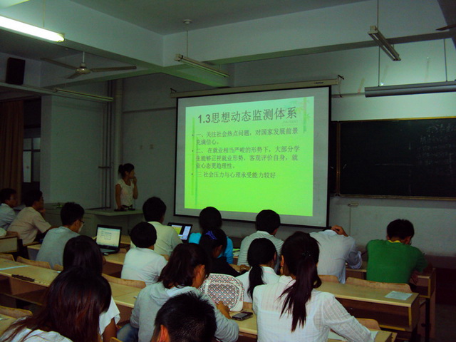 来自09、10级各班的团支部代表分别从思想政治教育、组织建设及规范化管理、服务团员成长成才等多个方面对本班2010—2011年度团支部工作情况进行了汇报。清晰明了、别具特色的PPT汇报展示了过去一年的辉煌成绩,代表们精彩纷呈的演讲配合图文并貌的PPT演示不时迎来台下评委老师和同学们的阵阵掌声。整个过程轻松愉快,代表们表示班级就像一个大家庭一样温馨,不管评比结果如何,“家”在自己心中都是最美好的。
