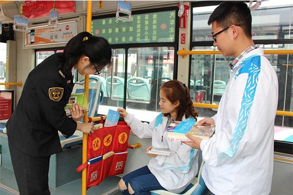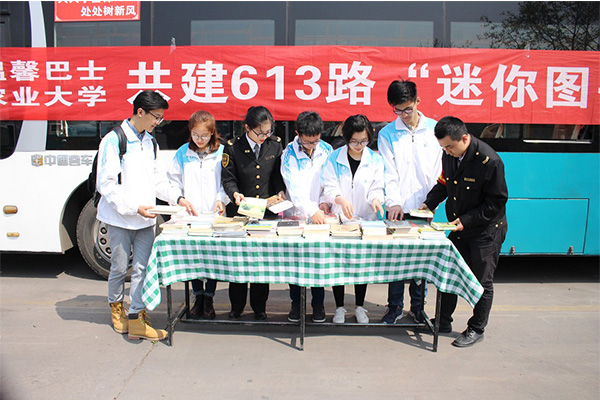 “前段时间,发现以前买的很多书闲置在宿舍,感觉很浪费,乘坐613路公交车看到车内放置了给乘客免费取阅的报纸,想到如果把自己的书籍拿出来可以惠及更多的人。”来自理信学院2015级的辛胜文是迷你图书馆的发起人,他的“把闲置好书放上公交车上,分享阅读”的想法不仅得到身边同学的相应,也得到了理信学院老师们的大力支持。