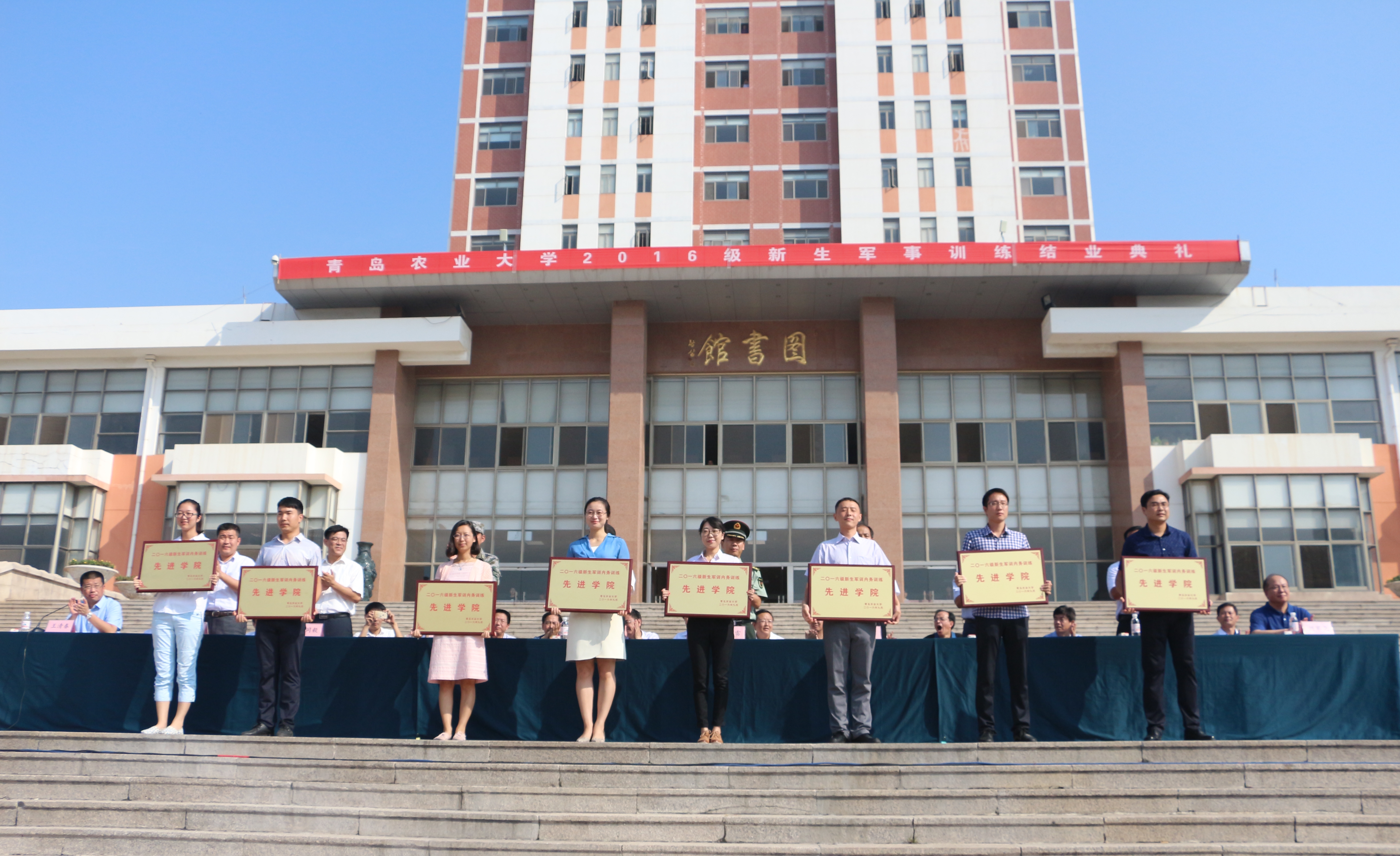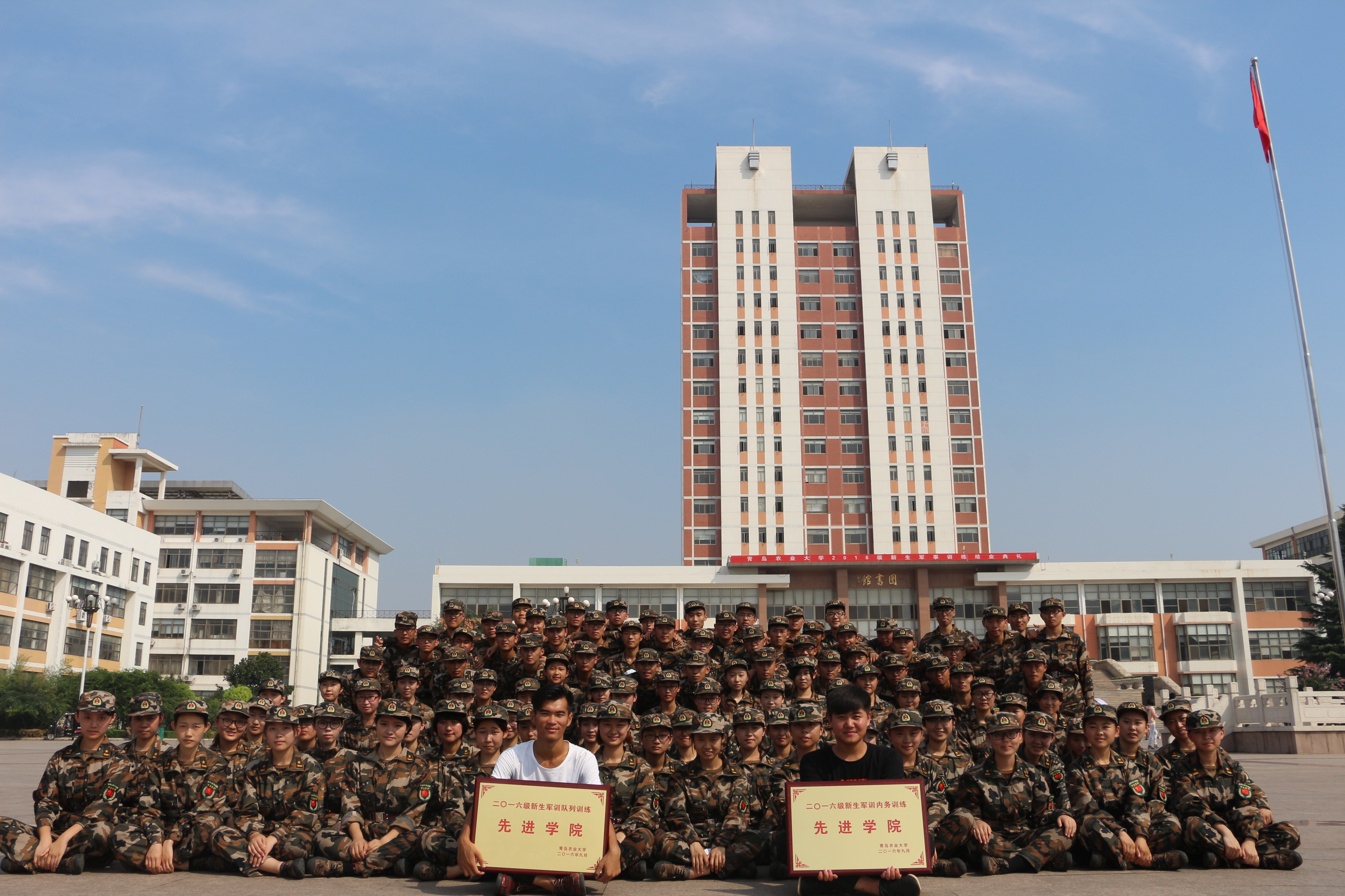 9月9日上午,青岛农业大学2016级新生军训汇演暨总结表彰大会在虹子广场隆重举行。十天劳累的风吹日晒,十天严格的内务整理,理学与信息科学学院终不负众望,取得2016级新生军训队列、内务双优秀的佳绩。