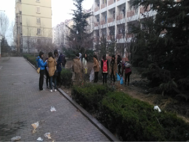 在我院学生会生活部干事的带领下,我院2013级学生在西苑一、二号楼之间进行草坪内垃圾的清理、自行车的整齐摆放、清理小广告工作。在生活部的安排下,同学们分小组有条不紊地工作着,虽然天气很冷,但是同学们积极向雷锋同志学习的意志丝毫没有缩减,满怀热情与激情,认真负责的干好自己本职工作,为广大同学营造一个良好的校园环境而奉献自己的微薄力量。在同学们的共同努力下,一、二号楼之间被打扫得整洁而干净。