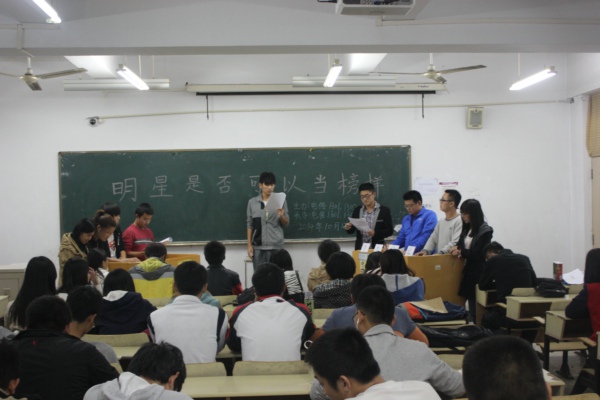10月12日,理学与信息科学学院电信专业在教学区C302举行了班级辩论赛,本次辩题为:明星是否可以当榜样。电信专业1301、1302班全体同学参加了此次辩论赛。