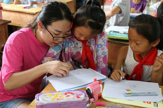 “我特别喜欢你们。”一个叫做龚布凡的女孩说。她同样是第三年参加活动,“你们这次开了好多我们以前没有上过的课程,特别好玩,我最喜欢沙画课了。你们还会帮我们辅导假期作业,妈妈都夸你们好。”作为一个准五年级生,龚布凡的学业自然是家长最关心的问题。团队在支教活动中将高年级学生与低年级学生进行分班教学,低年级班级大多是趣味性十足的课程,与之相对的,高年级的班级更注重于学习的辅导。在这种趣味性课程与学习性课程向相结合的环境下,孩子们的学习热情空前高涨。