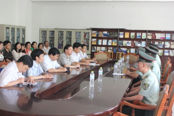 为更好地开展新生军训工作,9月4日,理学与信息科学学院在信息楼资料室召开2014级新生军训教官见面会。理学与信息科学学院党委书记李言照,院长崔文善,党委副书记、副院长杨凯,副院长陈龙猛,团委书记孙杰,正科级辅导员张照辉,团委副书记刘艳妍,辅导员王甜甜,各连队教官以及各班班主任与班主任助理出席了本次见面会。