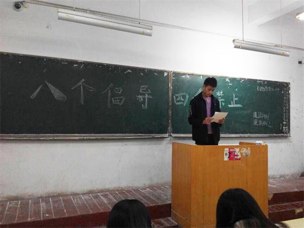 11月15日晚,理学与信息科学学院于教学区举办“八个倡导,四个禁止”主题团课,理信学院全体学生参加本次团课活动。