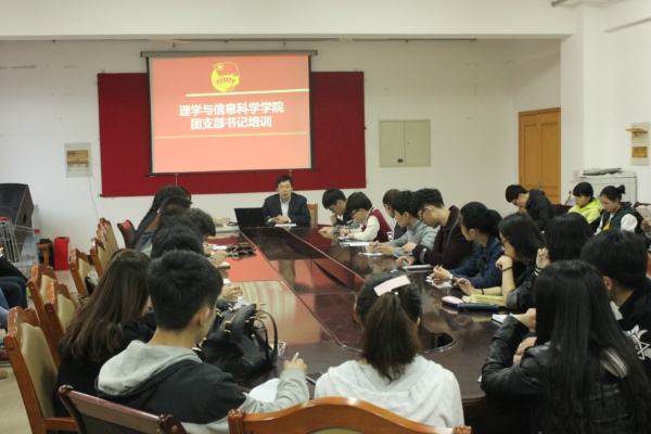 3月31日,理学与信息科学学院在信息楼资料室进行2014级团支部书记培训工作,学院团委书记孙杰,辅导员王甜甜与会,14级全体团支部书记、团支部副书记参加会议。