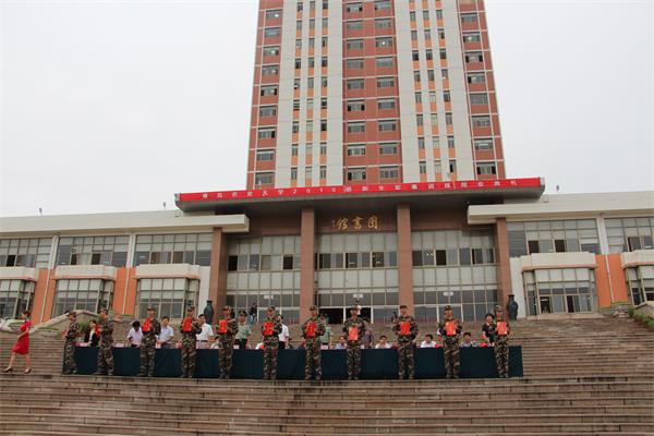 秋风飒爽,丹桂飘香,9月 11日上午 , 青岛农业大学2015级新生军训汇报演出在虹子广场隆重举行。理学与信息科学学院学工办全体老师以及全体新生连队到场。 不惧绵绵秋雨,各学院方队雄纠纠气昂昂依次从主席台前走过。理学与信息科学学院方队气宇轩昂、意气风发,以昂扬的姿态参加了本次军训汇演。他们喊着响亮的口号,洋溢着饱满的热情,向全校领导、师生展示了理信学院的精神风貌。理信学子奋发进取、敢于拼搏、刻苦训练,在本次军训队列展示中取得了骄人的成绩,荣获“2105级新生军训内务训练先进学院”等荣誉称号,两支连队获得“2015级新生军训队列训练优秀连队”。 现在,2015级新生的军训生活已完美的画上了句号,相信经过了军训的磨练,所有的同学都会有所收获。经历了大学第一课,理信新生们已经整装待发,去拥抱接下来的大学生活。