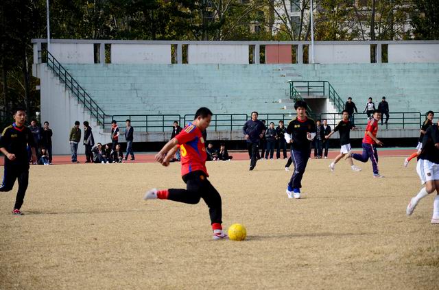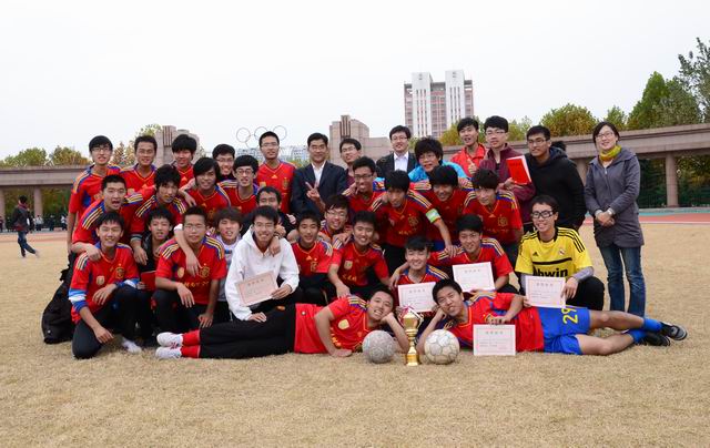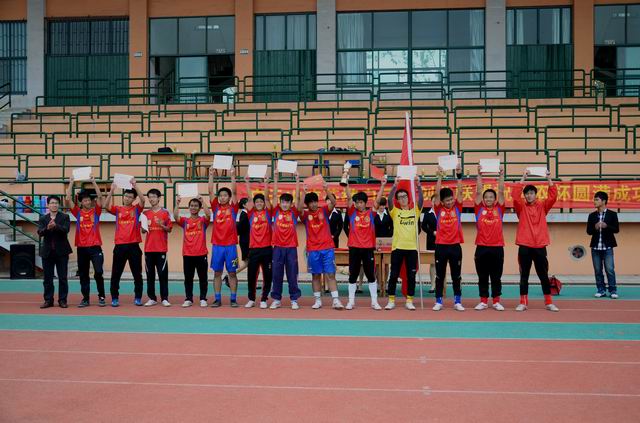 比赛一开始,我院球员就凭借着良好的意识、娴熟的技术、积极的拼抢、流畅的配合占得先机,展开了如潮水般的进攻,对方球门屡屡受到威胁。防守时,队员们沉着稳健,门将表现尤为出色,多次做出漂亮的扑救动作,化解了对方球员的多次射门。由于决赛双方精力高度集中,各尽所能,互不相让,比赛僵持不下,以0:0的比分结束了上半场。中场休息时,教练充分肯定了球员们在上半时的出色表现,并就下半场战术进行严密部署。此次战术部署立竿见影,收到奇效。下半场刚开始不久,我院球员便接连做出传递配合,边路快速进攻,并利用一次角球的机会洞穿对方球门,取得了领先。短暂的兴奋后队员们并没有掉以轻心,面对对手的极力反攻严加防守,完美的处理了一次又一次险球。场上球员的精彩表现彻底点燃了场边啦啦队员的激情,“理信冠军”的助威呐喊声响彻整个五环体育场。球员们如虎添翼,在加油声中越战越勇,进攻势头犹如离弦之箭,一发不可收拾。最终我院以1:0的比分赢得本次比赛的冠军,卫冕成功!在最后进行的“青农杯”足球赛闭幕式中,张照辉老师亲自为我院足球队员颁发冠军奖杯及证书。
