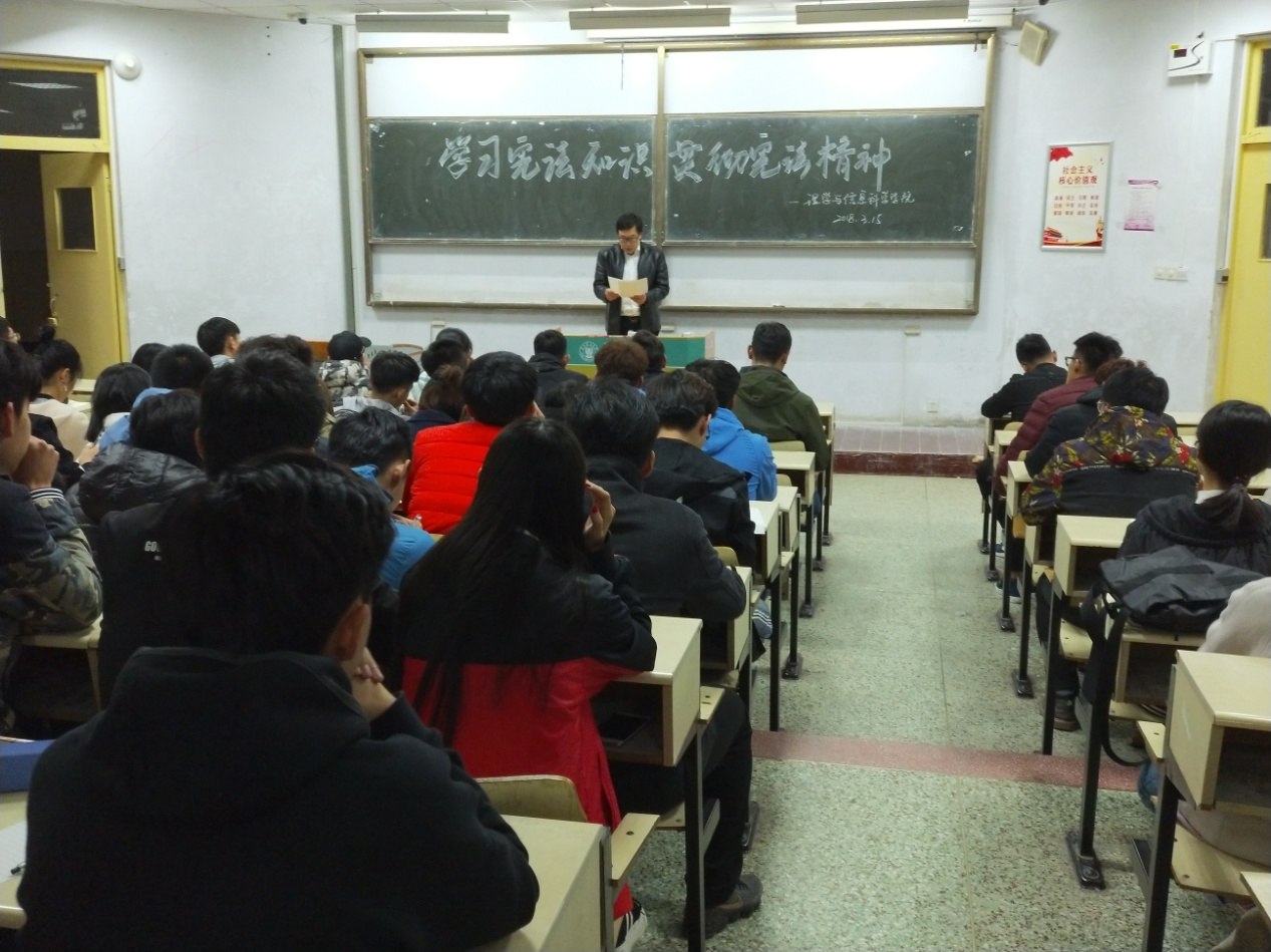 为进一步普及宪法知识,弘扬宪法精神,3月15日下午,理学与信息科学学院在教学区开展“学习宪法知识 贯彻宪法精神”主题教育会议,深入学习贯彻宪法精神,学院团委书记孙杰出席此次会议。