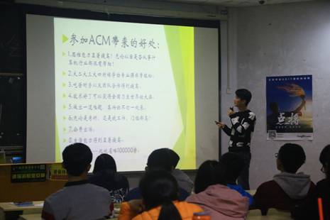 培训会上着重介绍了ACM比赛的内容和比赛的题目大纲。同时让会员们了解到ACM程序设计大赛中基础程序技术的熟练运用为同学们在以后的工作学习中带来的优势,让同学们对ACM程序设计有了更多的了解。信工1602班孔威说:“对于刚进入大学的我来说,从没想过自己可以有机会参加这样高大上的比赛,老师和学长的讲解让我真正开阔了眼界,我会努力争取多参加这样的比赛,不断提高自己,为学院争光。”