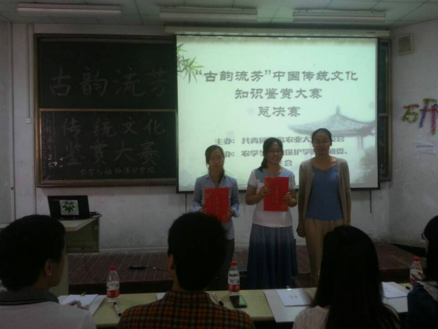 本次比赛以PPT为基本形式,展示综合性传统文化鉴赏,包括古诗词、传统礼仪、历史文物、书画剪纸、民族特色、舌尖中国、名胜古迹、传统服装等,每位选手徐一个主题进行讲解。我院学生以精彩的讲演、丰富的创新感染了在场的每一位听众,赢得一致好评。