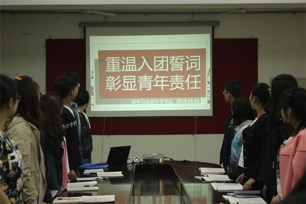 5月4日是青年节,为忆五四峥嵘岁月,纪念五四运动,青岛农业大学理学与信息科学学院全体学生团干部在信息楼资料室举行五四青年节宣誓活动,重温入团誓词,彰显青年责任。学院正科级辅导员张照辉参加本次会议。