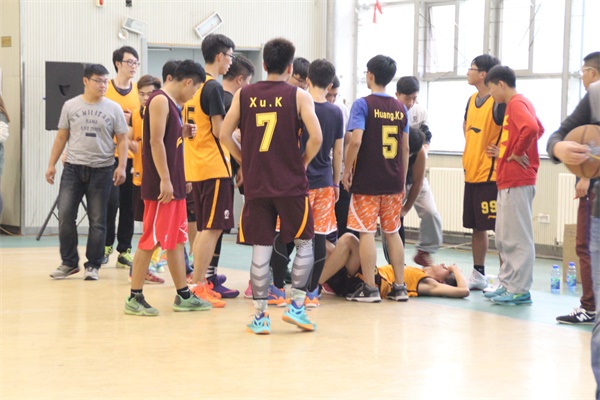 人说“无兄弟,不篮球”。一名队员不慎摔倒,即使是在比赛过程中也迅速引起场上所有球员的密切关注。进行过简单急救措施后,队员们方才放心离开,继续比赛。