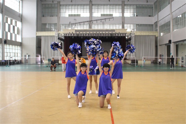 中场休息时,全场观众的情绪被学院拉拉舞队一支充满活力、节奏感极强的热舞带动,合着节拍热情的摇旗呐喊。