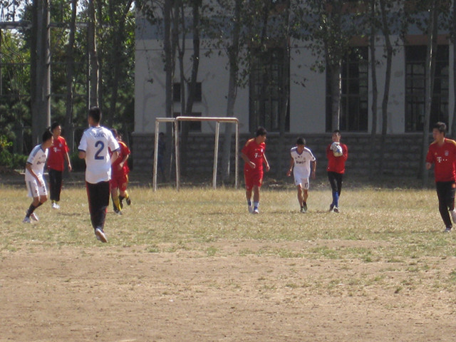 2012年10月10号中午,理信学院与建工学院在学校东足球场进行了第一场足球比赛。比赛还未开始,队员们个个斗志昂扬、蓄势待发,在场的观众殷切期待双方的精彩对决。
