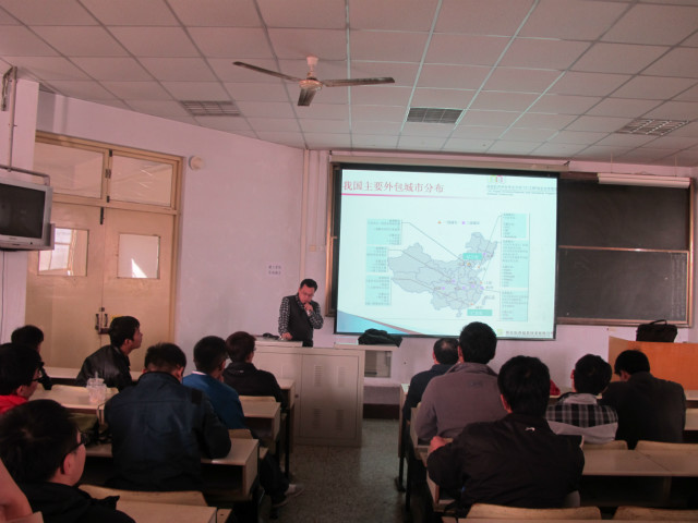 为了扩展学生们对本专业的知识扩展以及对本专业的具体认识,构造良好的校企合作模式,增强专业技能。11月17日,理学与信息科学学院邀请青岛东合信息技术有限公司的专家张旭平、王小茜分别在教学区B402和B304为软件11级12级的学生们做了关于软件服务外包讲座,学院副院长吴自库老师参加了本次讲座。 首先,吴院长就本次讲座的老师做了简单地介绍。随后,张旭平及王小茜前辈形象的结合PPT对“121工程软件外包专业方向”及应用性日语的应用做了细致的传授,并针对校企合作模式的培养方向与规划,专业课程的学习方法及软件外包行业的发展历程前景作了详细的报告。两位专家从软件服务外包的类型与发展和软件服务外包日语的日常应用入手,以深入浅出、风趣幽默地讲解让我院学子对软件行业、日语应用有了更全面地认识。最后,两位老师对专业课程的学习提出了恳切的希望,希望同学们多读、多听、多说来强化日语口语;多想、多练来提高上机操作水平。 相信,通过此次专题讲座,同学们对软件外包专业有了更深一步的认识和了解,对日语发挥的重要性有了一次新的肯定,并对自己的未来就业方向也有了明确的规划。